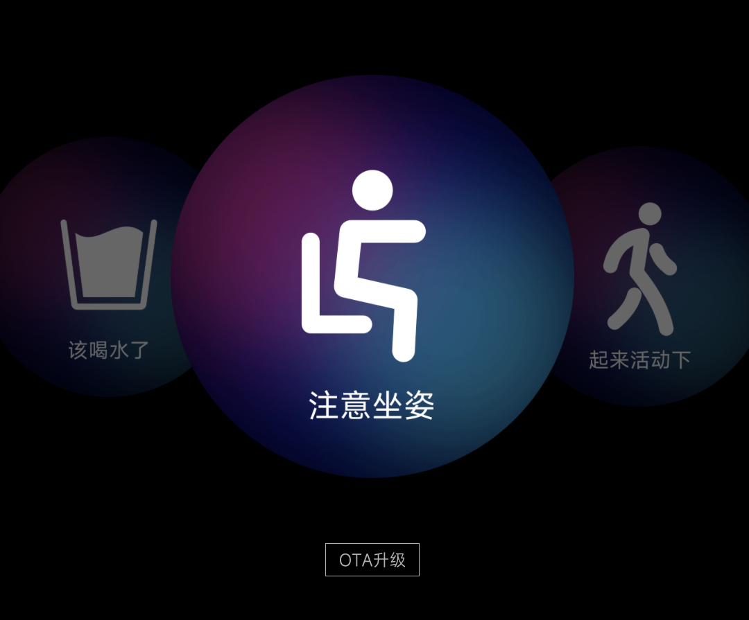 他能时刻监测你的坐姿,提醒你保持挺拔坐姿,还会提醒你喝水、起来运动,远离亚健康。(OTA后实现)