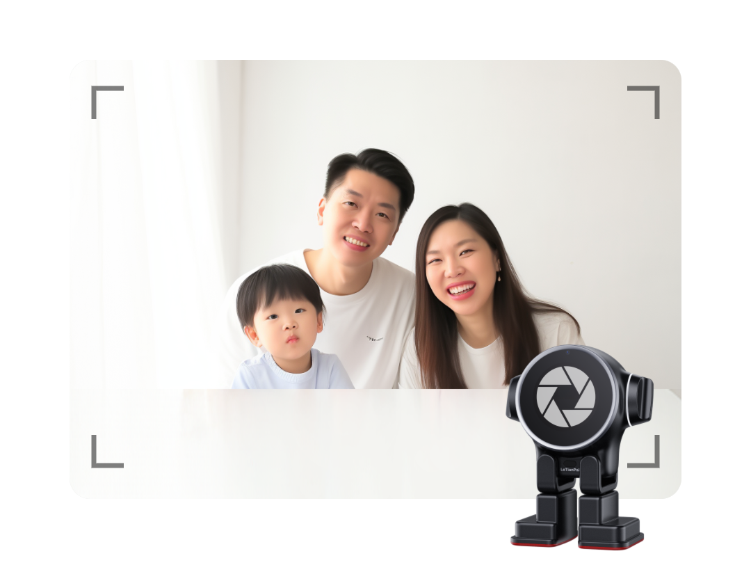 一句话让乐天派桌面机器人为你拍照, 有了乐天派桌面机器人,全家福一个都不少,随时帮你记录幸福时刻。(OTA升级后实现)